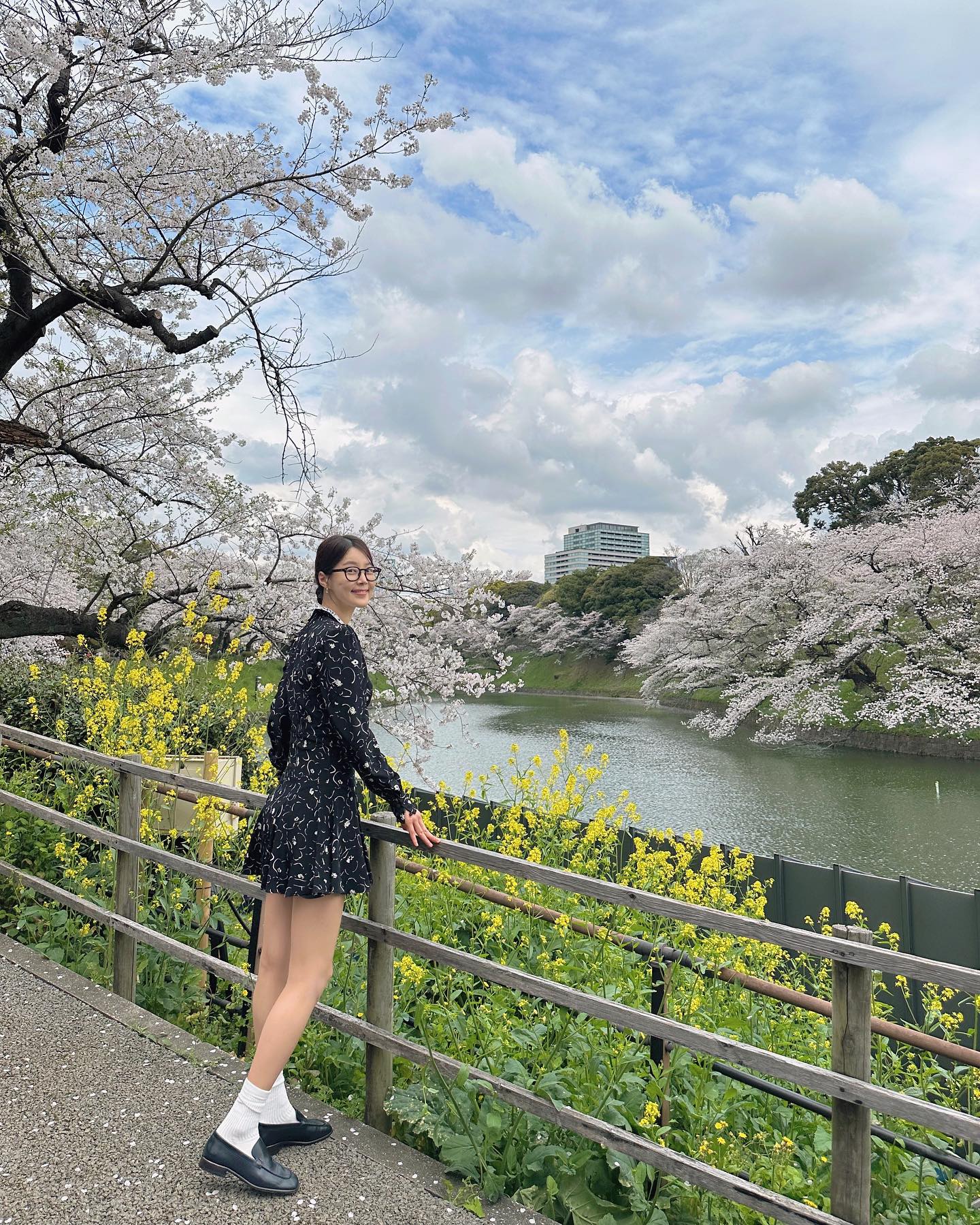 여기에 올블랙 스타킹까지 믹스 매치하며
